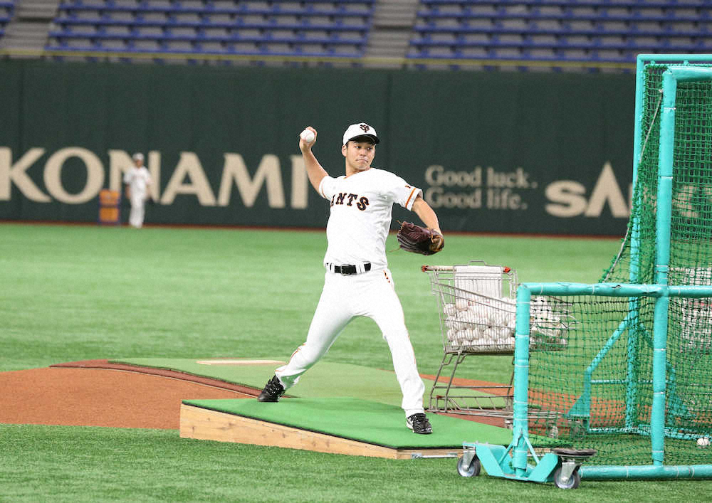 カード最終戦だったこの日は、普段より早めに東京ドームへ向かった。ビジターの阪神より、およそ2時間早く始まる、巨人の試合前練習を見ようと思い立ったからだ。まだ阪神が到着していない、ほぼ無人の三塁側ベンチから巨人の打撃練習を見ていると、一つ、阪神との違いに気づいた。着目したのは打っていた打者ではない。打撃投手の足元に目をひかれた。