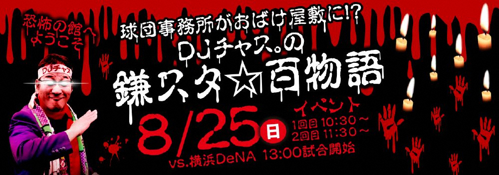 日本ハムは19日、2軍本拠地・鎌ケ谷スタジアムで行なわれる25日のイースタン・リーグDeNA戦(13時試合開始)で、夏の納涼企画「DJチャス。の鎌スタ☆百物語」を実施すると発表した。