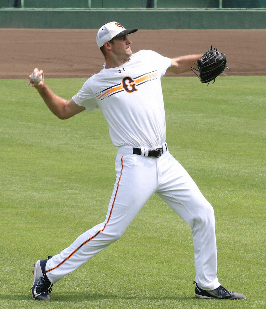 巨人・ヤングマンが19日、川崎市ジャイアンツ球場で投手練習に参加。キャッチボールなどで汗を流した。
