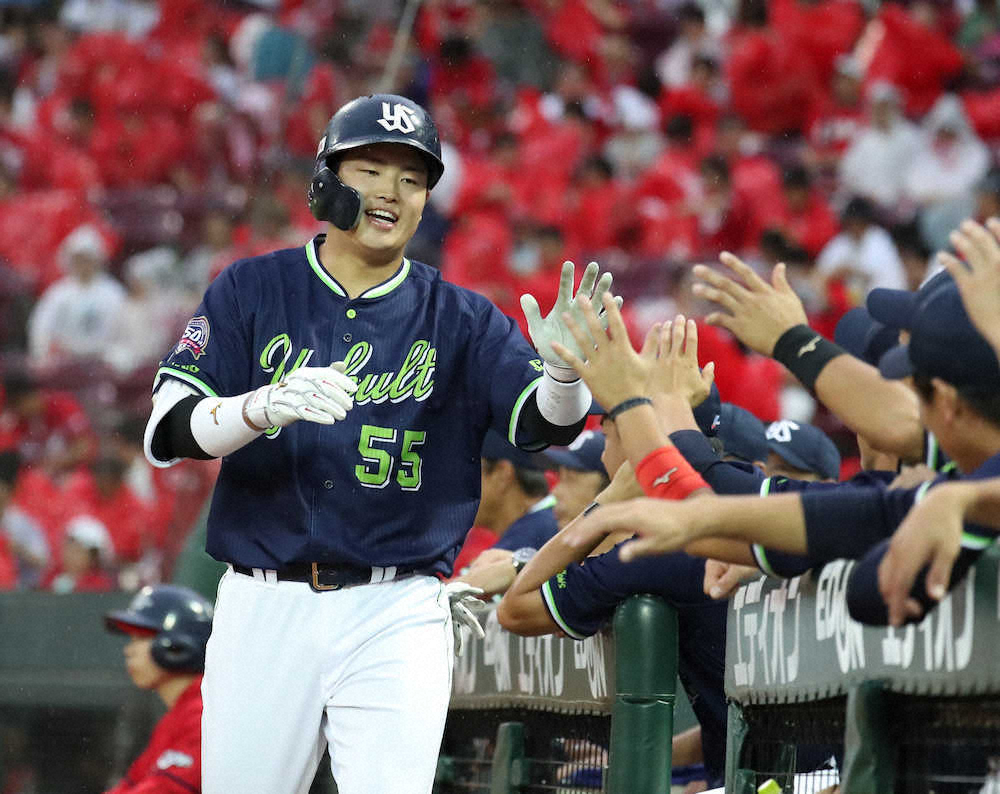 同郷で同い年の熊本工出身の山口を打ち砕いた。2年前、九州学院3年だった村上は、ドラフト後の地元テレビ局の企画で山口と対談し「(高校で)対戦がなかったので、次の舞台で打てればと思います」と宣言していた。今季2度目の対戦で有言実行。「一人の投手として見ている。打てればどんな投手でもうれしい」。プロ2年目。特別な意識はなくなったが、自身の言葉にケジメをつけた。