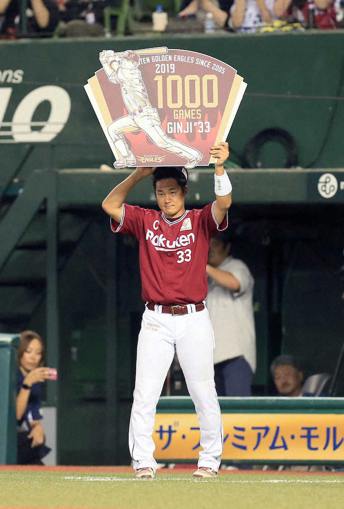 銀次は西武戦に「5番・三塁」で出場。5回が終わると記念のボードを贈られ、スタンドの拍手を浴びていた。