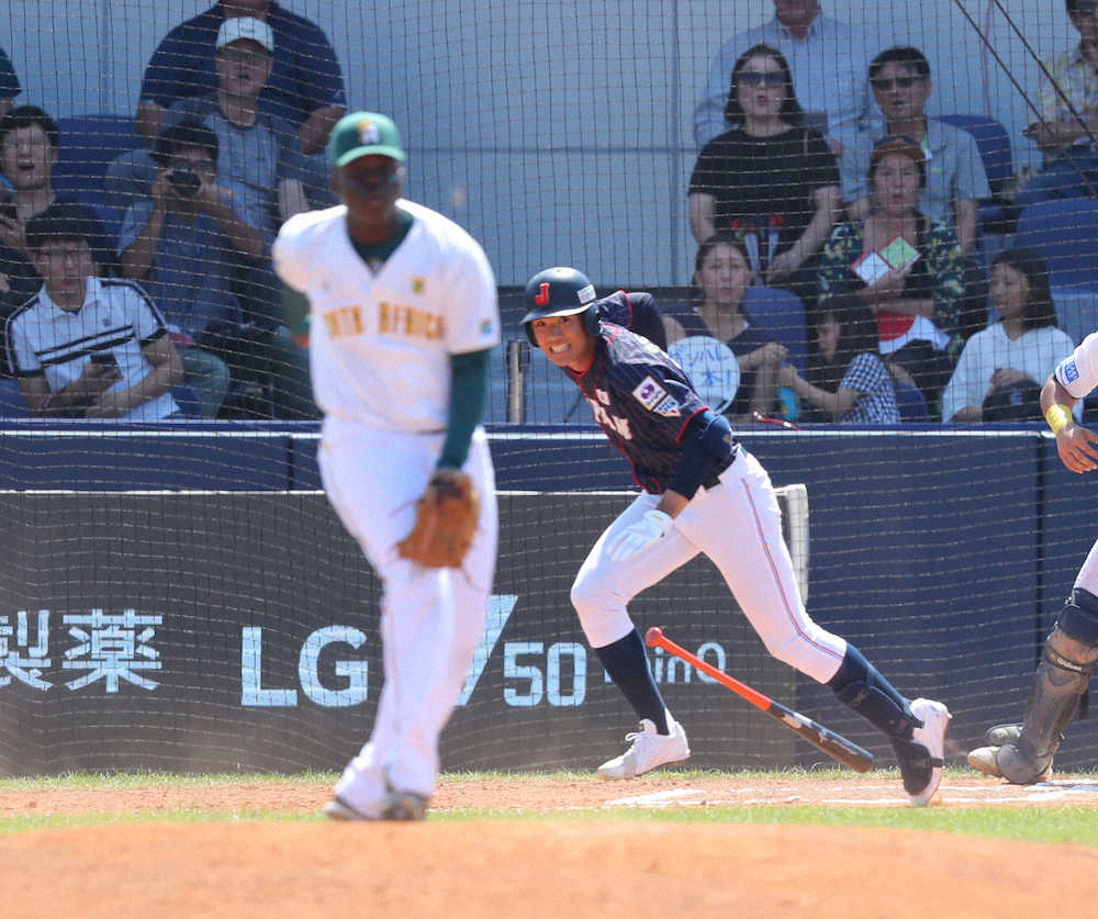 U18高校日本代表・奥川(3年=星稜)は31日、韓国・機張で行われた「第29回WBSC U18(18歳以下)ワールドカップ」南アフリカ戦の6回に代打で今大会初出場。投手強襲の内野安打を放ち、チームのコールド勝ちに貢献した。