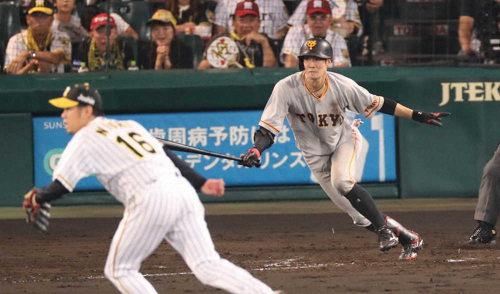 先発の山口が2回に梅野の適時打と西のスクイズで2失点。それでも4回1死から岡本が四球で出塁すると、阿部が右越え二塁打を放って1死二、三塁に。ゲレーロは捕飛に倒れたが、西の暴投で1点差とすると、若林がファウルで粘った末の8球目を右前に運んで同点に追いついた。