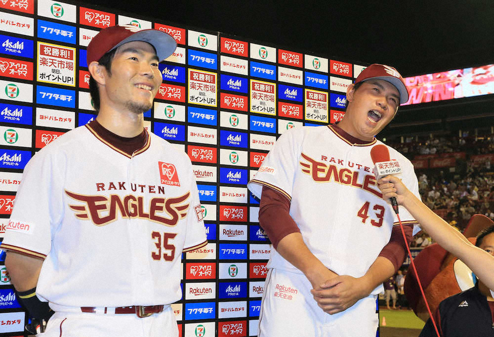 お立ち台では「最高でーす」を連呼させられ、楽天・島内は「地獄でした」と苦笑いを浮かべた。隣に立った台湾出身の宋家豪(ソン・チャーホウ)が通訳を通したが、質問がうまく伝わらずに「最高でーす」を連発。その流れで、絶叫キャラではない島内も叫ばないといけない流れになった。
