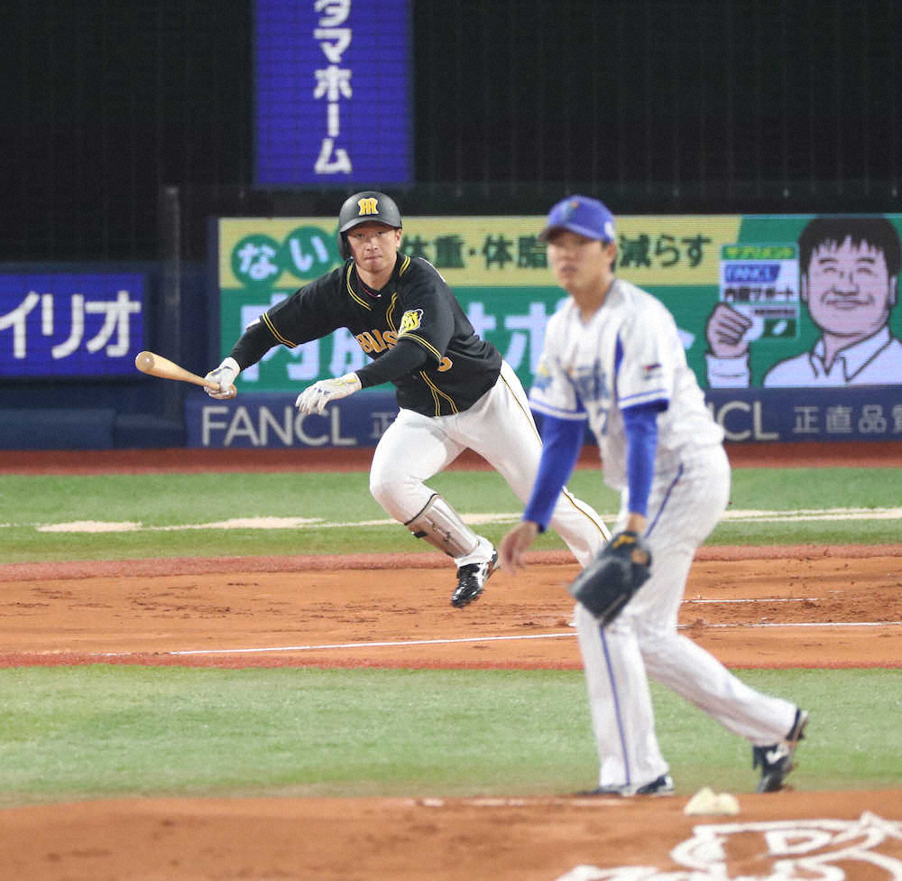 「幻の1本」から収穫を得た。5試合連続「2番中堅」で先発起用された阪神・近本が、初回1死からここまで16打数2安打と抑えられていたDeNA先発の上茶谷から中前打を放った。ノーゲームとなり記録には残らなかったが、手応えをつかむと同時に意味ある一打となった。