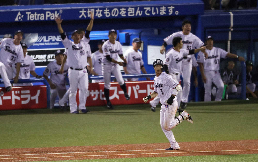 9回のヤクルトは7番・中村から。死球の後、野選やエラーで無死満塁のビッグチャンスを作る。2死後、3番・山田哲が打席に立ち、マウンド上の5番手・フランスアがカウント0-1から投じた2球目を振りぬくと、打球はレフトスタンドへ。今季33号は劇的なサヨナラ満塁本塁打となった。