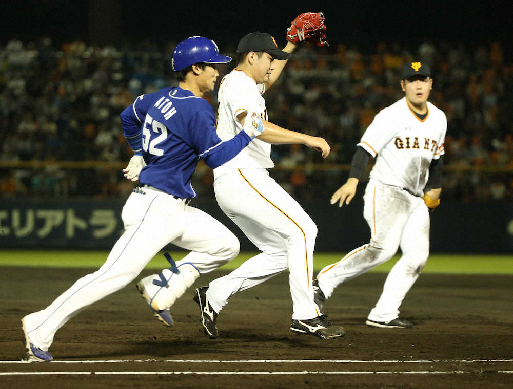 宮本投手総合コーチがトレーナーとマウンドに向かった後に続投も、投球後に下半身がよれる。地方球場特有の軟らかく低いマウンド。大島に2点二塁打を浴び、2回4失点で降板した。トレーナー室で治療を受けたとみられ、試合後は歩いて車に乗り込んだ。
