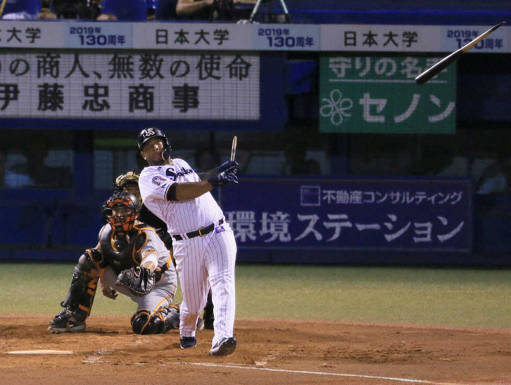 ヤクルト“30発トリオ”完成 バレ4年連続30号 バット折れてもバックスクリーンへ