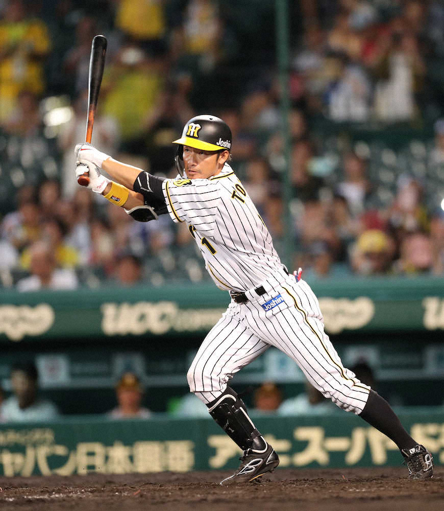 午後10時を回り、鳴り物応援が禁止になっても、この夜、一番の盛り上がりが残っていた。今季限りでの退団を表明している鳥谷が5点リードの8回1死一塁で代打出場。カウント2―2から平井の外角低めフォークを流し打った一打は左翼フェンス手前で弾んだ。退団表明以降の初安打。一塁から梅野が一気に生還し今季94打席目で生まれた初適時打で初打点をマークした。