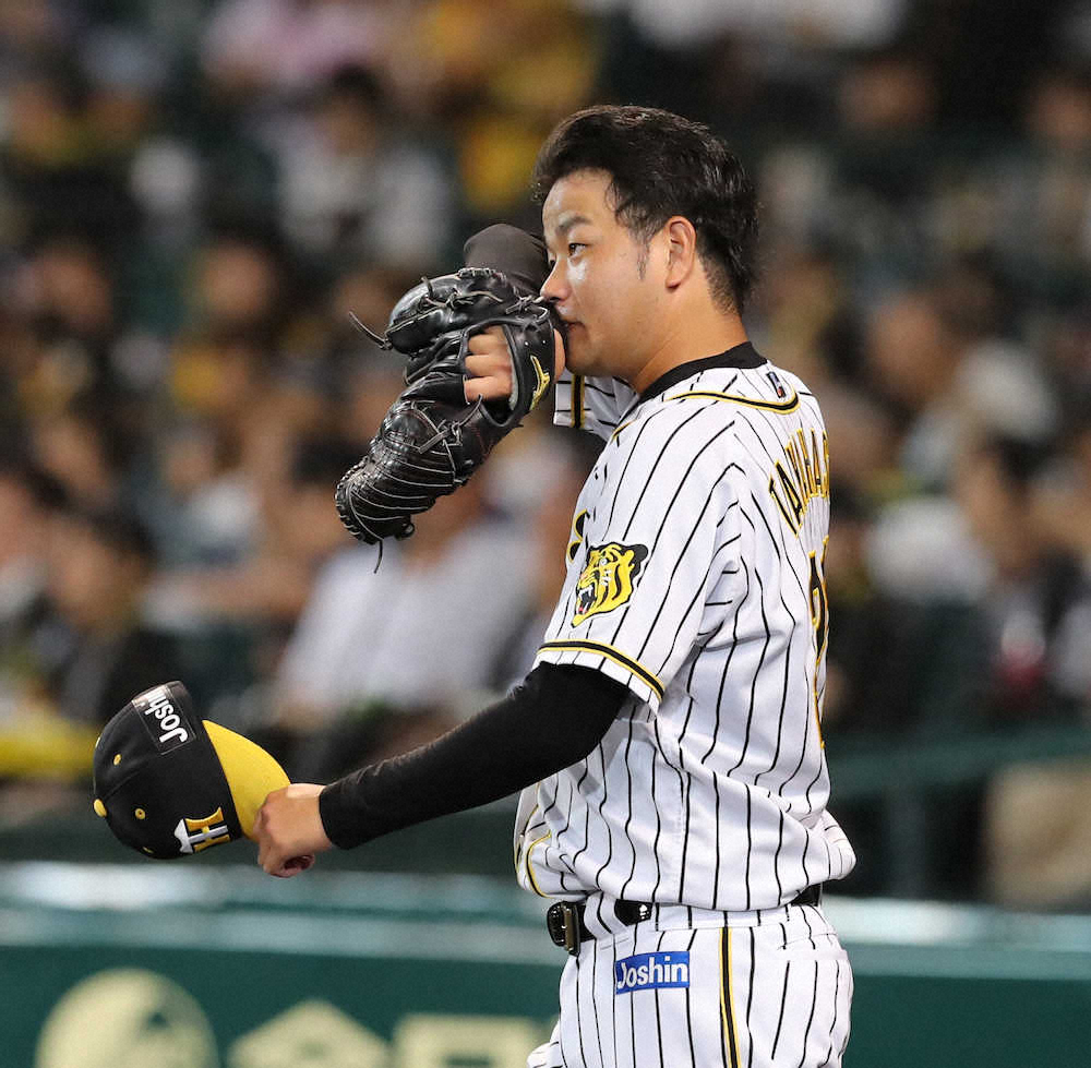 <神・ヤ>4回、ヤクルト打線につかまり苦しい表情の高橋遥(撮影・大森 寛明)