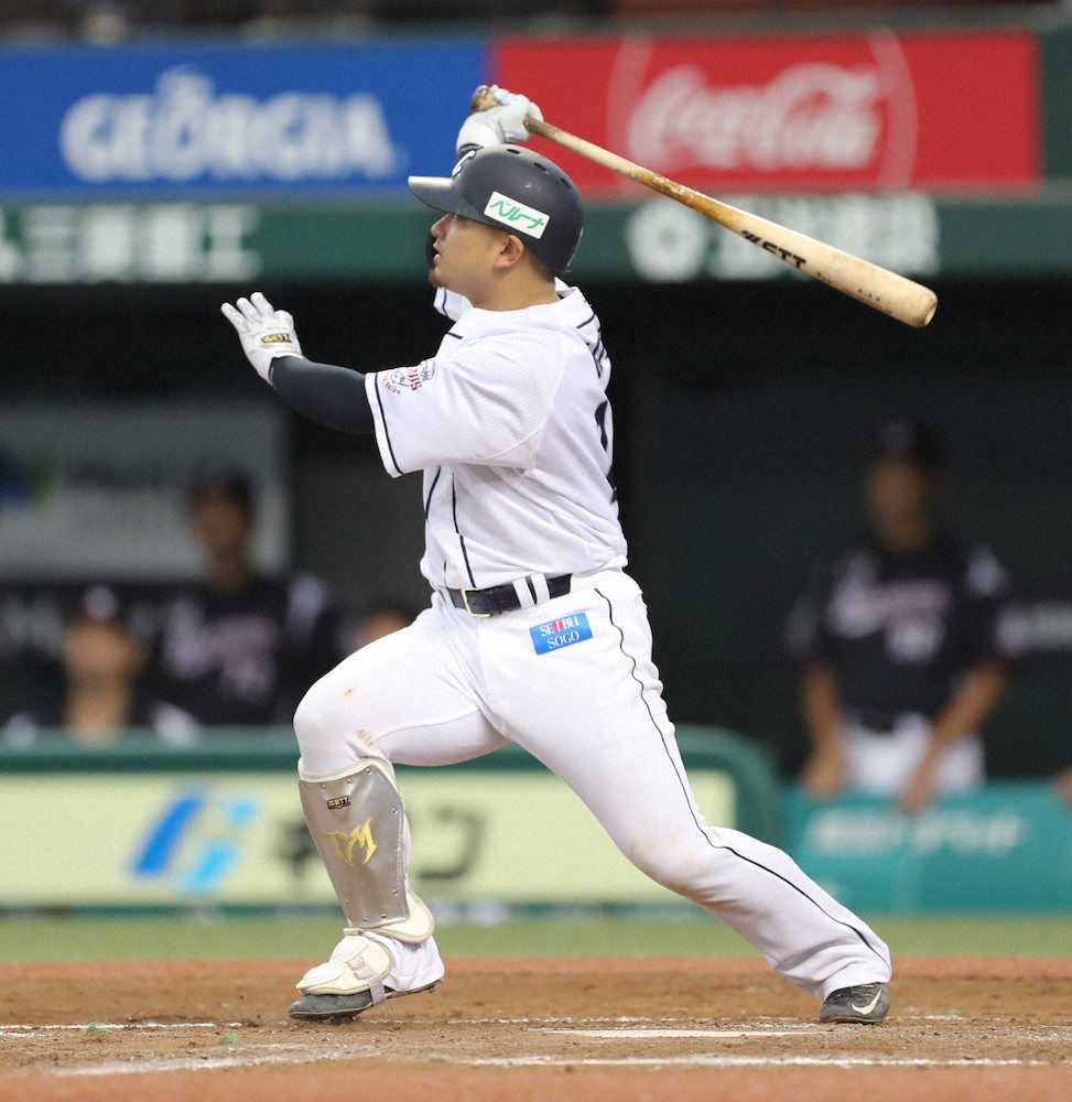 <西・ロ23>8回1死一、二塁、森が勝ち越しの適時二塁打を放つ(撮影・大塚 徹)