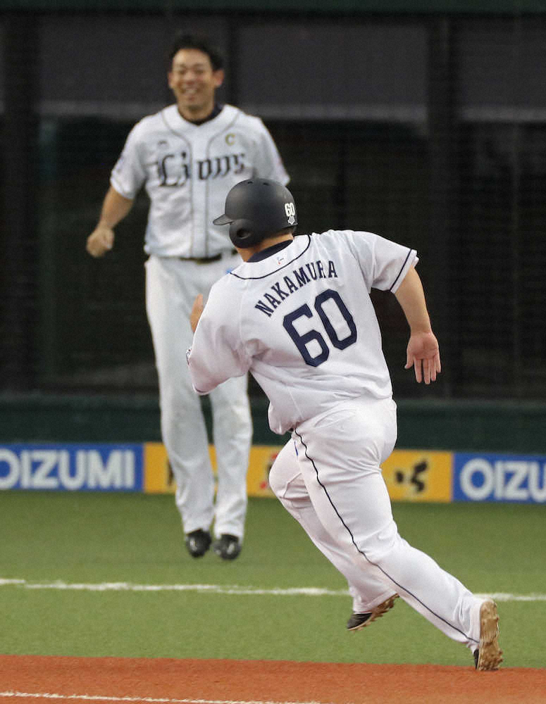 本塁打だけではない。中村が、貪欲に次の塁を「おかわり」した。3―3の延長10回1死一塁でメヒアの打球は、ふわりと中前へ。長打を警戒して定位置より後方に守っていた中堅・岡が猛然と前進してきたが、一、二塁間まで出ていた背番号60は打球が落ちる前にスタートした。