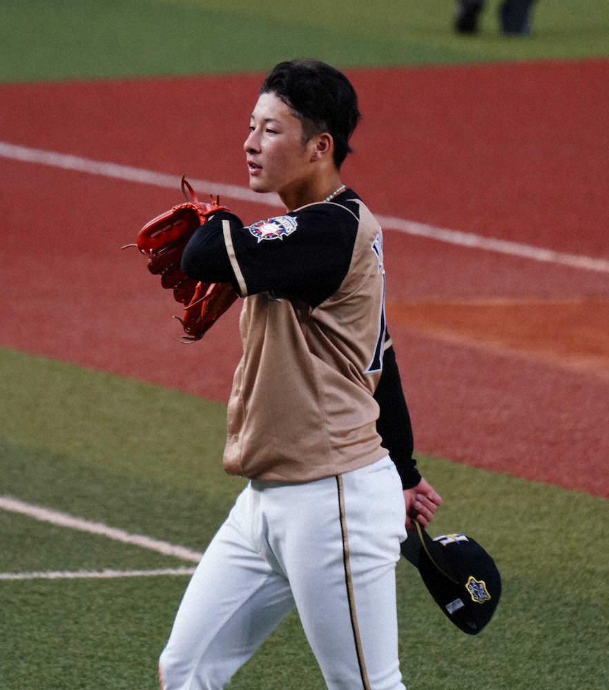 <ロ・日24>2回裏、先頭の藤岡にヒットを許したところで吉田輝は降板(撮影・長久保 豊)