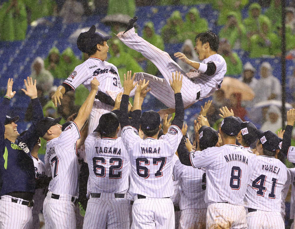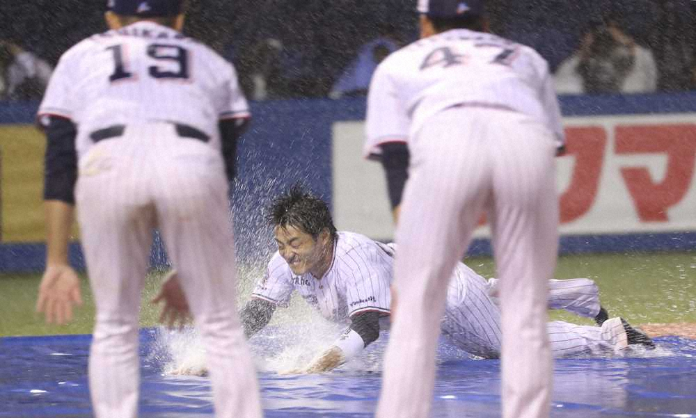 <ヤ・巨>降りしきる雨の中、つば九郎とハグする三輪(撮影・村上 大輔) Photo by スポニチ ヤクルト・三輪 どしゃ降りの中で爆笑引退セレモニー 最後まで“いじられ… ギャラリーで見る この記事のフォト 2019年09月22日の画像一覧 もっと見る 2019年09月22日の画像をもっと見る