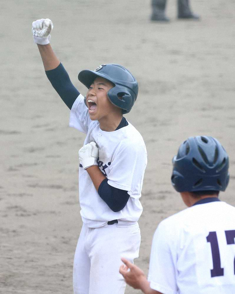 5―6の8回2死二、三塁で佐藤慎悟(2年)が振り抜いた内角真ん中の直球は、相手の一塁手の前で大きくバウンドを変え、右翼線に転がった。「気持ちが入っていたので予想外の方向にバウンドしてくれたのかな」と思いを込めた一打で2点をもぎとり7―6と逆転。歴史を塗り替えた背番号13は「本当にうれしかった。みんながつないでくれたおかげ」と笑顔だった。