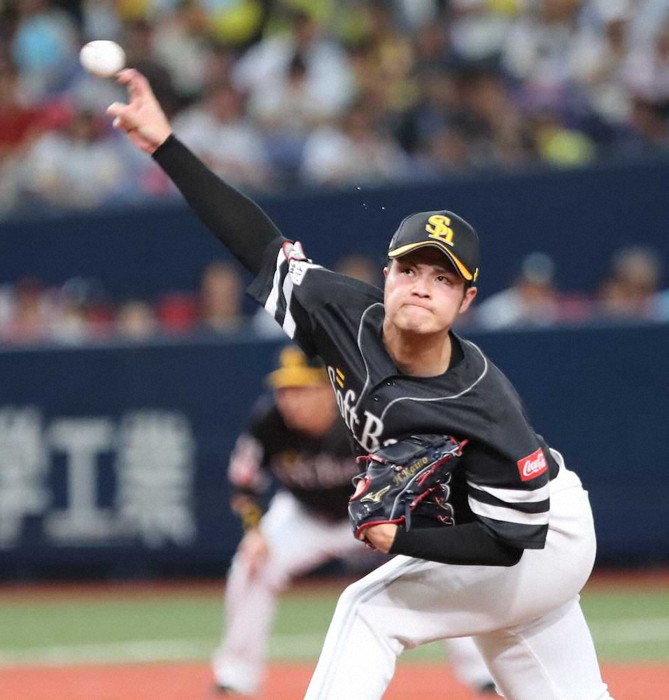 ソフトバンクのドラフト1位右腕、甲斐野央投手が圧巻の投球を披露した。4―2の6回に3番手で登板。先頭のロメロを全てフォークで3球三振に仕留めると、東洋大でチームメートだった中川には151キロの直球で空振り三振。モヤにも全てフォークを投げ、3球三振。わずか10球で中軸を料理した。