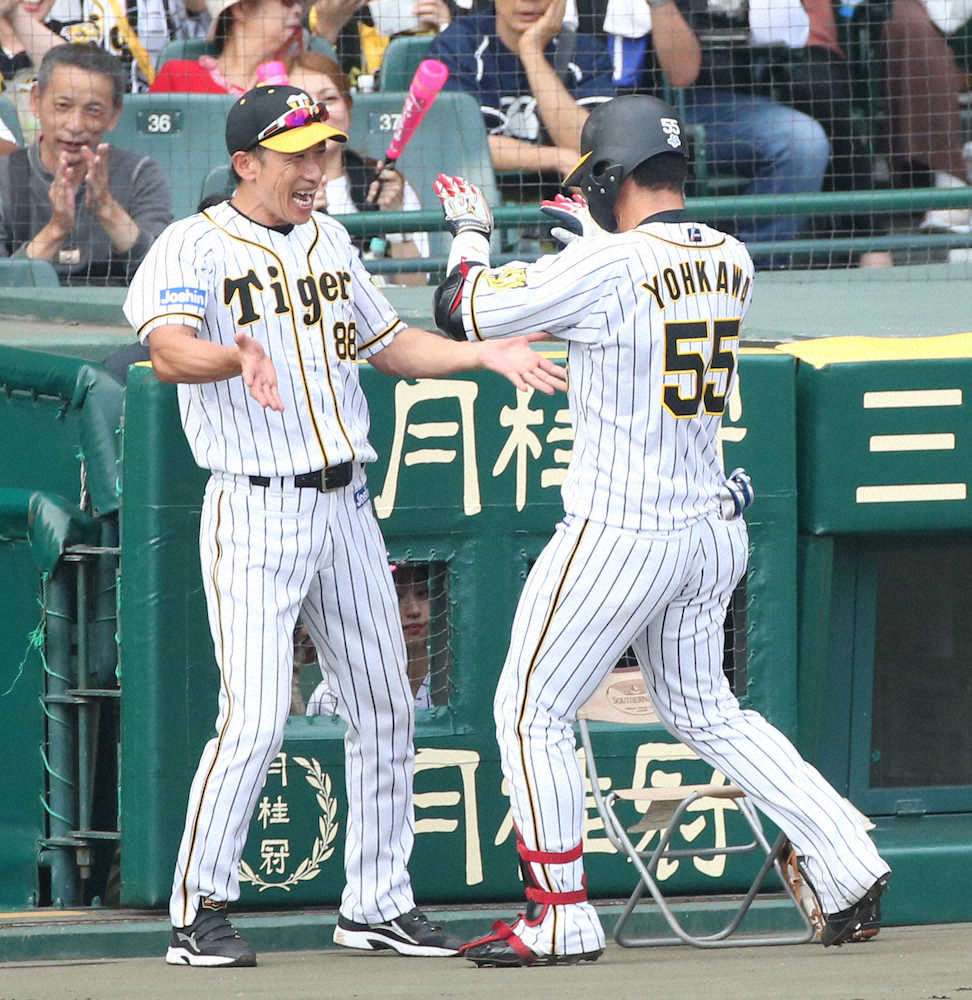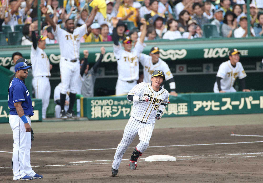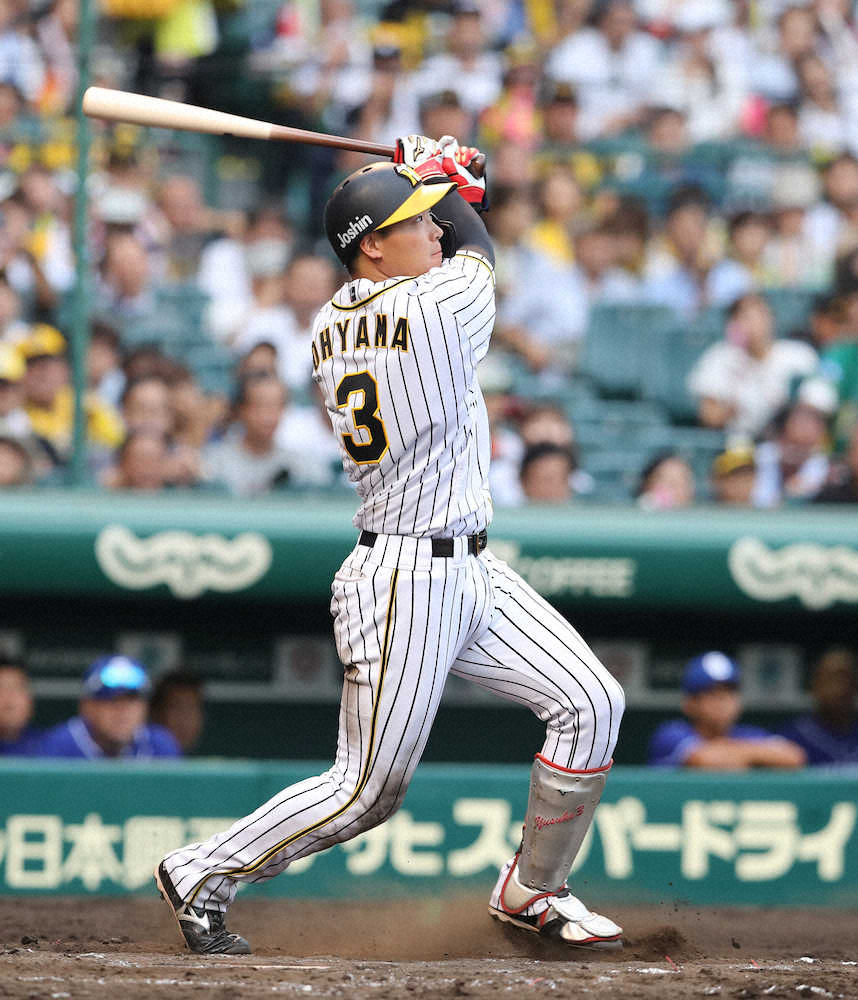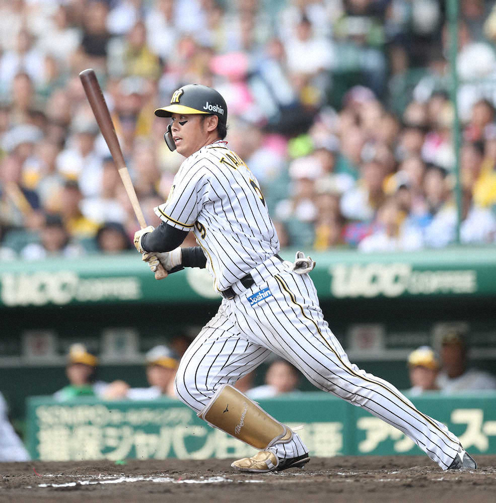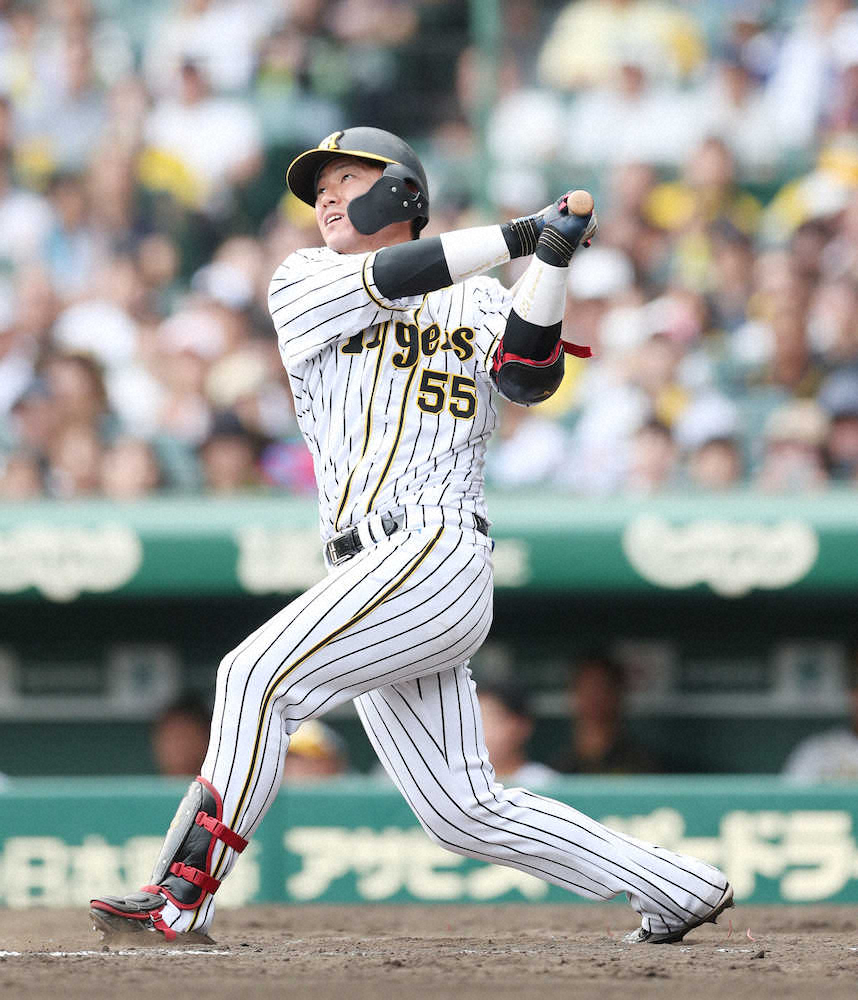 <神・中24>5回2死、代打・陽川は左越えに先制ソロを放つ(撮影・大森 寛明)