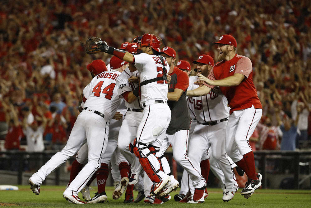ナショナルズは3回に1番トレイ・ターナー(26)がソロ本塁打を放ったが7回まではわずか3安打。しかし1―3で迎えた8回、今季37セーブを挙げているブルワーズの左腕ジョシュ・ヘイダー(25)を攻め立て、2死満塁から4番のフアン・ソト(20)が右前にタイムリーを放った。この打球を右翼のトレント・グリシャム(22)が後逸。この間に一走のアンソニー・レンドーン(29)も生還し、土壇場で3点を入れて試合をひっくり返した。