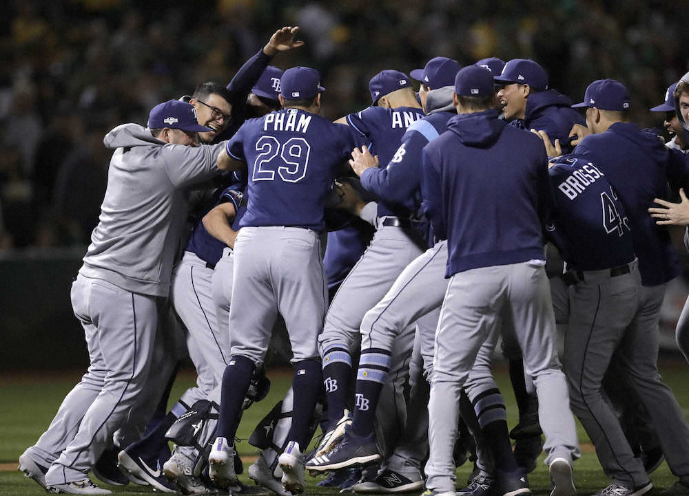3回に2打席連続本塁打を放ったディアズを迎えるレイズのアダメズ(AP) Photo by AP レイズが一発攻勢で6季ぶり地区シリーズ進出 ディアズが2打席連続アーチ ギャラリーで見る この記事のフォト 2019年10月03日の画像一覧 もっと見る 2019年10月03日の画像をもっと見る
