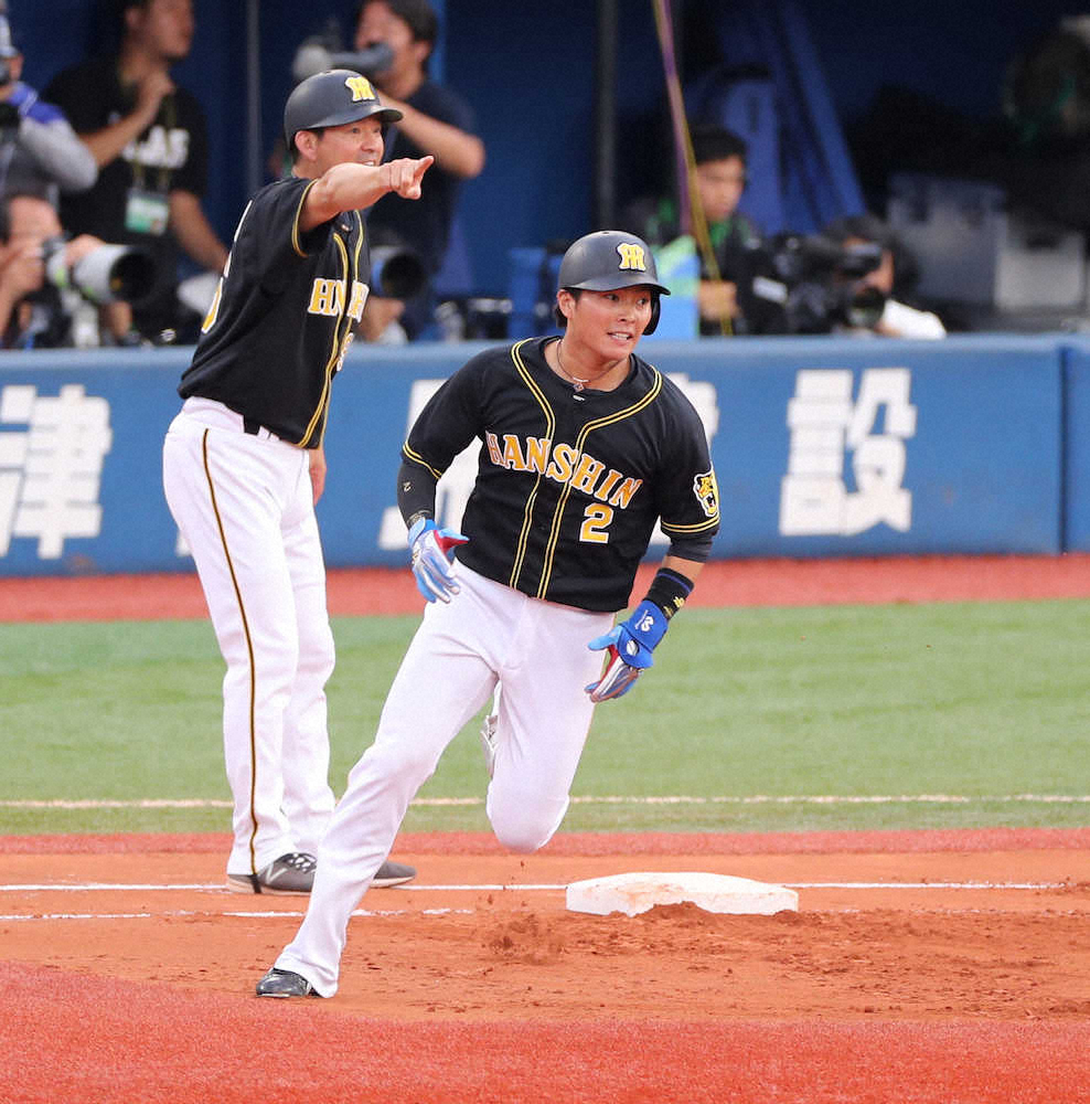 初回の先頭・近本の右中間への二塁打以降は無安打に抑え込まれていたDeNAの先発・浜口から、青柳の代打・上本が中前打で出塁。2死一塁で前日5打点と活躍した北條が三塁線を破る二塁打で、一塁から上本が一気に生還した。さらに本塁返球が逸れた間に進塁した北條を三塁に置いて、福留が適時右前打。2点目を挙げ浜口をマウンドから引きずり下ろした。