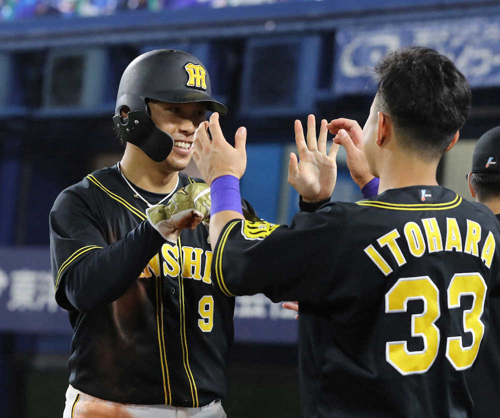 6回、先頭の高山が左中間を破る二塁打で出塁。梅野の犠打で1死三塁とすると、迎えた木浪の初球で、DeNAの国吉が痛恨の暴投。三塁から高山が生還した。