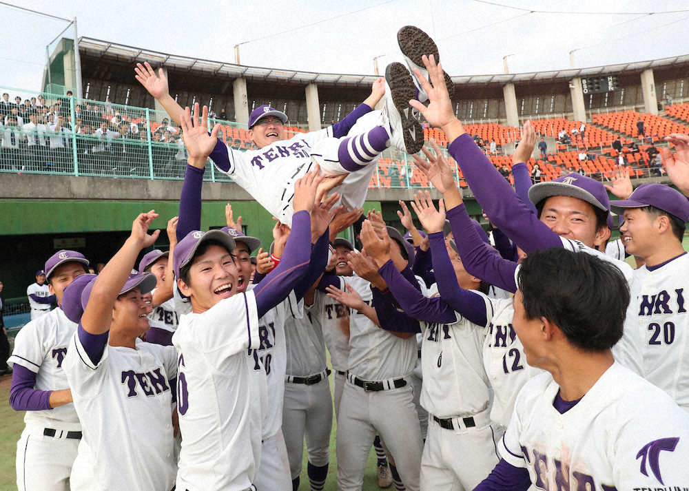 <天理大・大体大>初回2死満塁、逆転の本塁打を放ち、ポーズを決める天理大・大石(左から2人目) (撮影・平嶋 理子) Photo by スポニチ 天理大3季ぶりV!6番・大石「狙い通り」直球捉えて逆転満塁弾 ギャラリーで見る この記事のフォト 2019年10月14日の画像一覧 もっと見る 2019年10月14日の画像をもっと見る