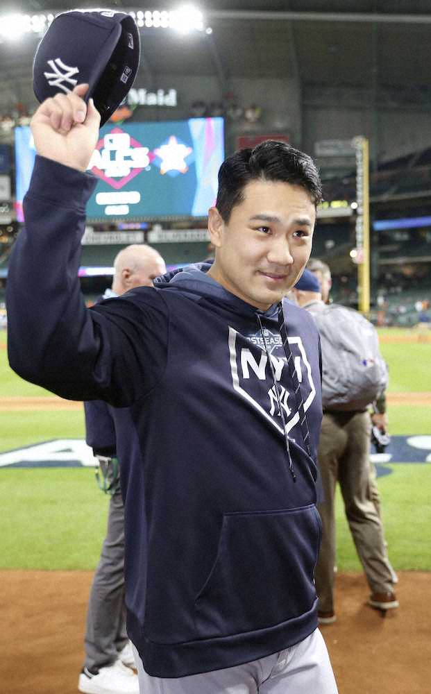 <アストロズ・ヤンキース>試合後、ファンの声援に応える田中