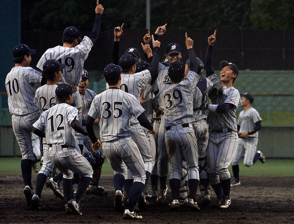 2回2死二塁から、春にベストナインを受賞した「7番捕手」の坪倉斗真(4年=近江)が左前に先制打を放ち、これが決勝打になった。3回1死一塁からは「2番DH」の主将、吉村颯(4年=龍谷大平安)が右越えに適時二塁打。6回に1点を返され1点差に詰め寄られたが、7回には吉村のこの日2打点目となる中堅への犠飛などで2点を加え突き放した。先発右腕の中山塁(4年=岡山南)は今季初失点を喫したが、7回途中を2失点と好投。最後はエースの中山怜央(4年=奈良大付)が今季初めて救援登板し1回を無失点で締め、歓喜の瞬間を迎えた。