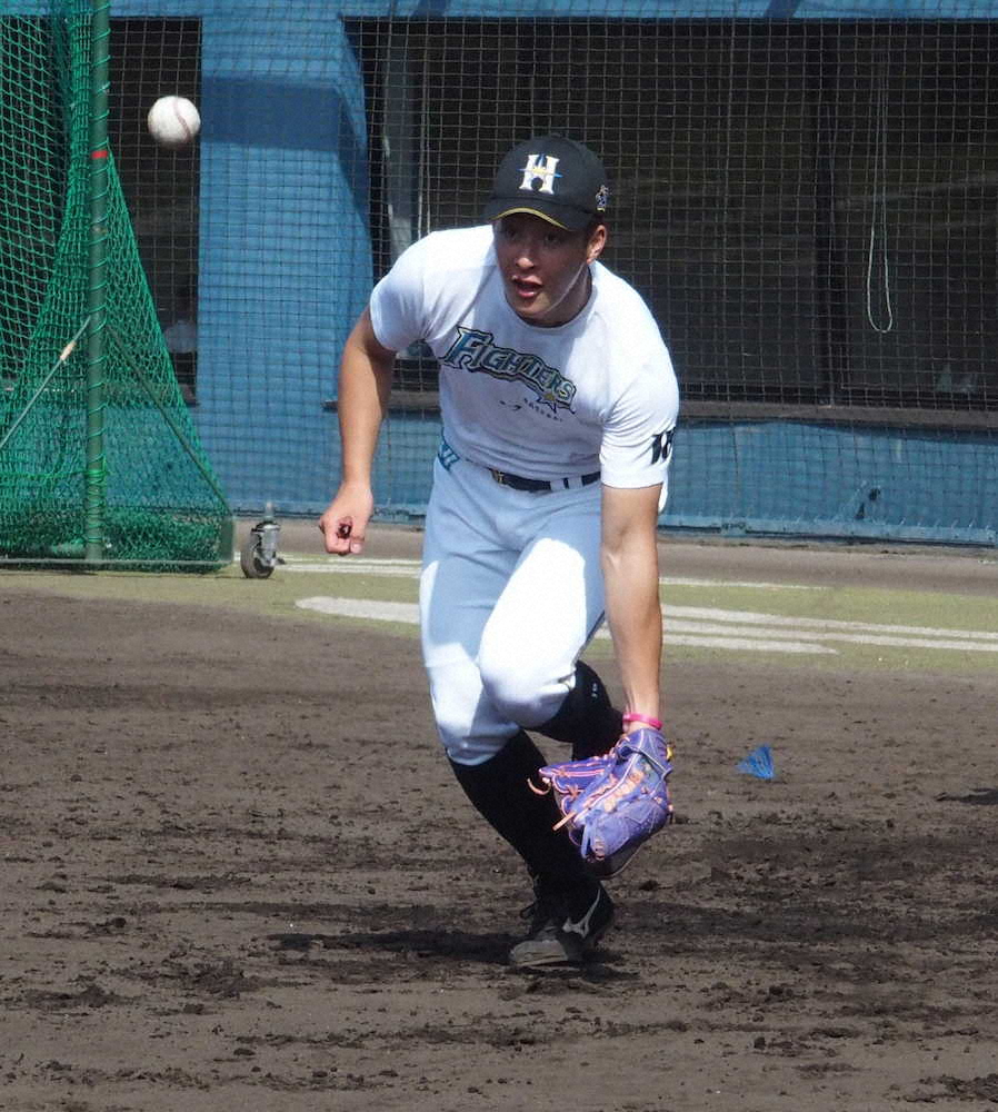 守備練習に取り組む日本ハム・吉田輝