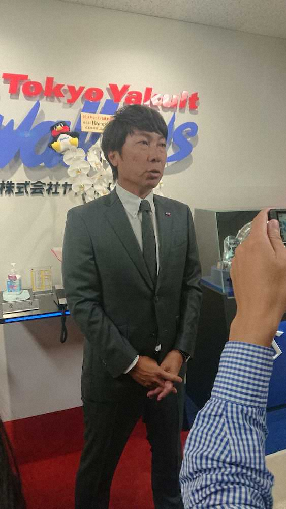都内の球団事務所でスカウト会議に出席。約3時間半の議論の末、決定し「投手が弱点なのは明らか。一番いい投手、一番スワローズにマッチしてくれる投手だと思う。1軍で活躍できる実力があると思っている。顔も良い」と話した。