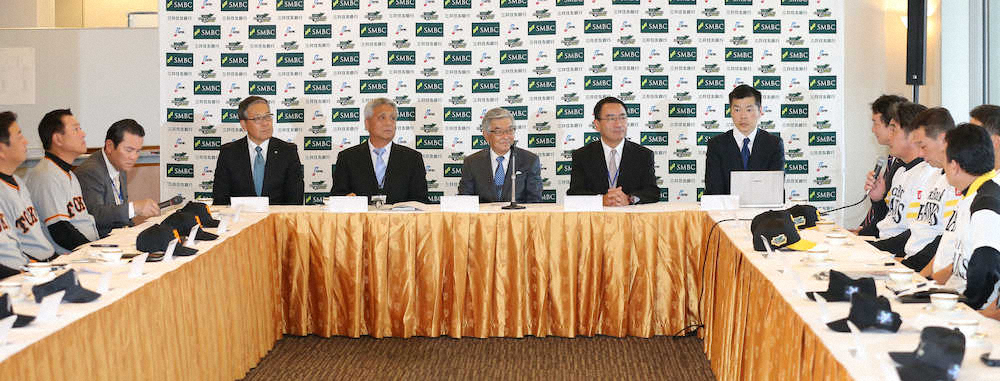 <日本シリーズ監督会議>工藤監督(右)を前に予告先発・山口を発表する原監督(撮影・岡田 丈靖) Photo by スポニチ 日本シリーズ開幕戦の予告先発発表…千賀は41年ぶり史上3人目の3年連続、山… ギャラリーで見る この記事のフォト 2019年10月18日の画像一覧 もっと見る 2019年10月18日の画像をもっと見る