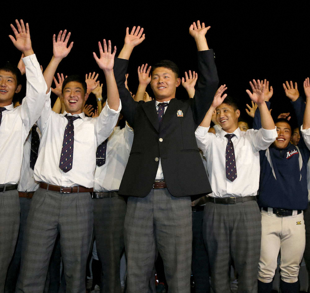 DeNAに7位指名された有明・浅田将汰投手(18)。運命の指名は別室で見守った。開始から約2時間後、7位で指名された後、会見場に現れた最速149キロ右腕は「緊張した。呼ばれるまでとても長くて不安だったが、本当にホッとした」と胸をなでおろした。