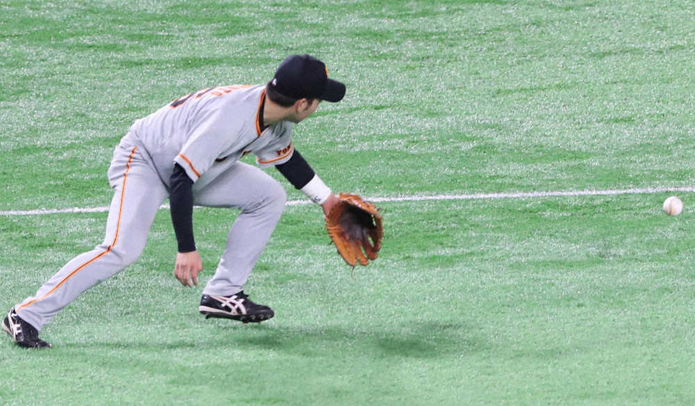 <日本シリーズ、ソ・巨>7回無死、デスパイネの打球をエラーする山本(撮影・中村達也)