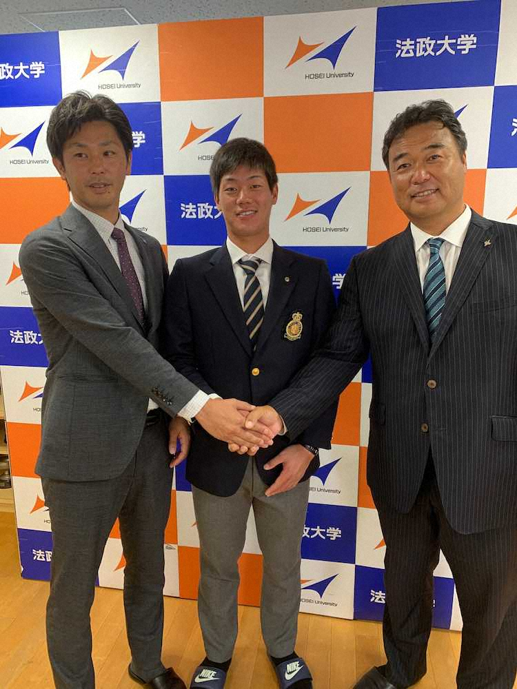 法大・福田 ロッテから指名あいさつ、“4つ目の日本一”手土産にプロ入り誓う
