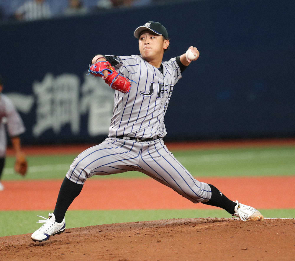 今年のドラフトで日本ハムから1位指名を受けた河野竜生投手(21)は先発で7回1/3を7安打1失点。