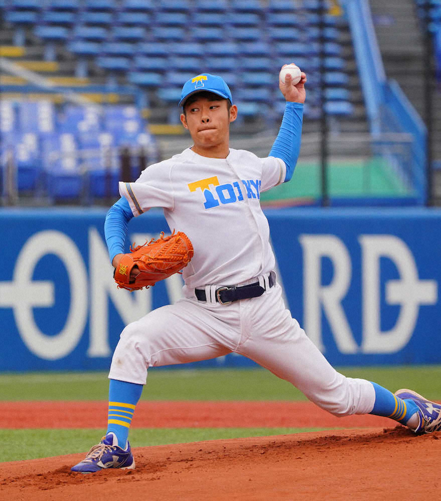<東大・法大>力投する東大先発の小林大(撮影・島崎忠彦)