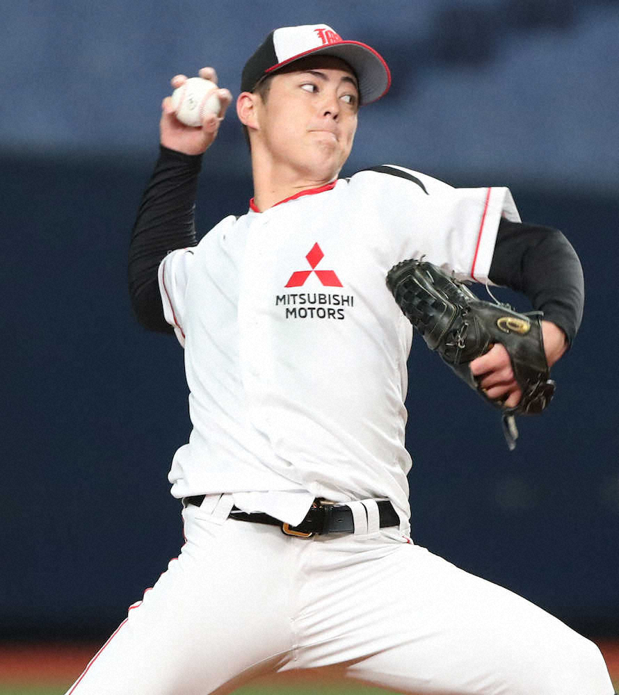 <社会人野球日本選手権 Honda・三菱自動車岡崎> 7回無失点の好投をみせた三菱自動車岡崎先発・大井 (撮影・平嶋 理子)