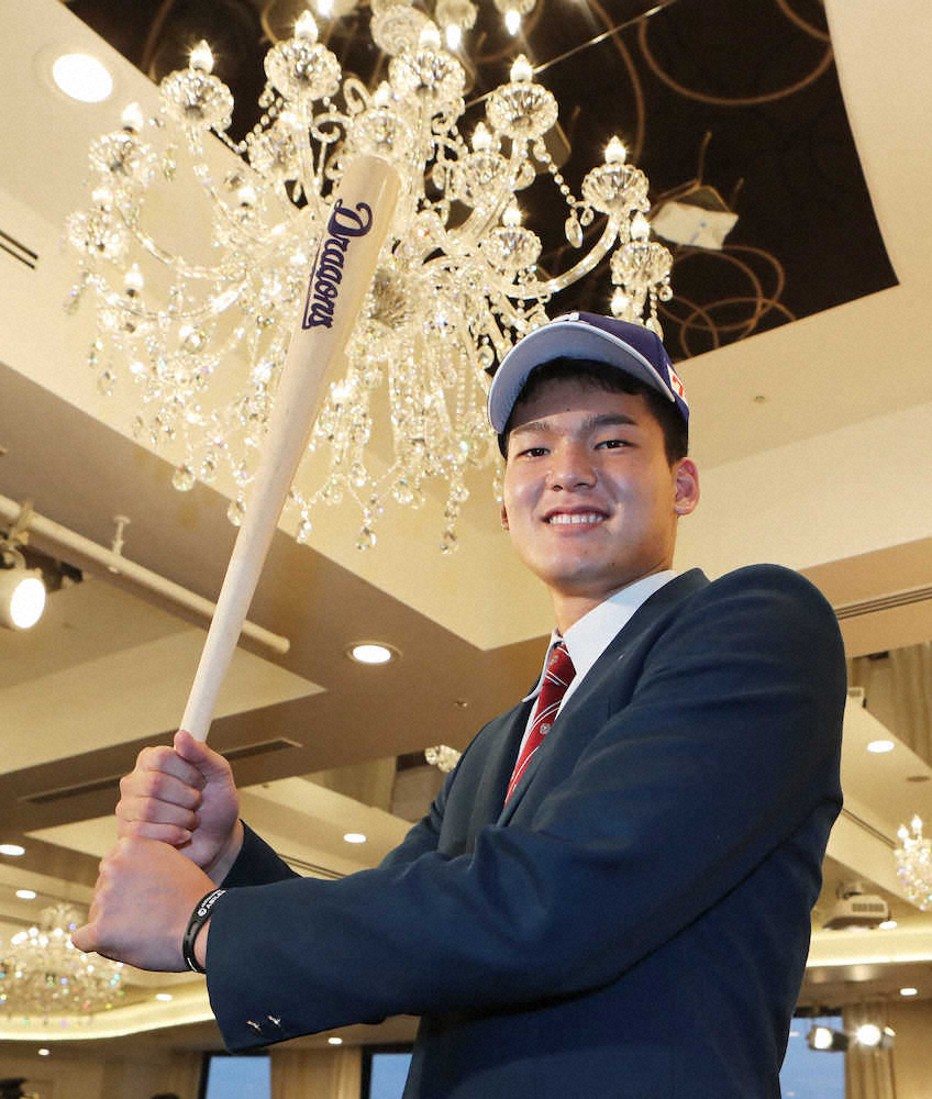 上限いっぱいの金額を提示した米村明チーフスカウトは「それに値する選手だと思います。夏の初戦(愛知大会1回戦・天白戦)で、1打席目の一振り目でホームランを打って、そこに驚いた。自分の20年ちょっとのスカウト活動でもなかなかない。早い時期に1軍に上がって、ウチの打線の力になってほしい」と大きな期待を寄せていた。(金額は推定)