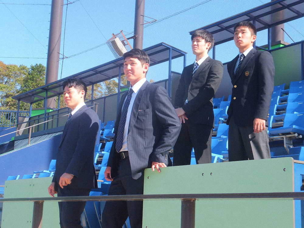 日本ハムのドラフト2位の立野(東海理化)、3位の上野(京都国際)ら4選手が千葉・鎌ケ谷の2軍施設を見学。寮のトレーニングルームで選手会長の中島、清宮とも顔を合わせ、あいさつした。