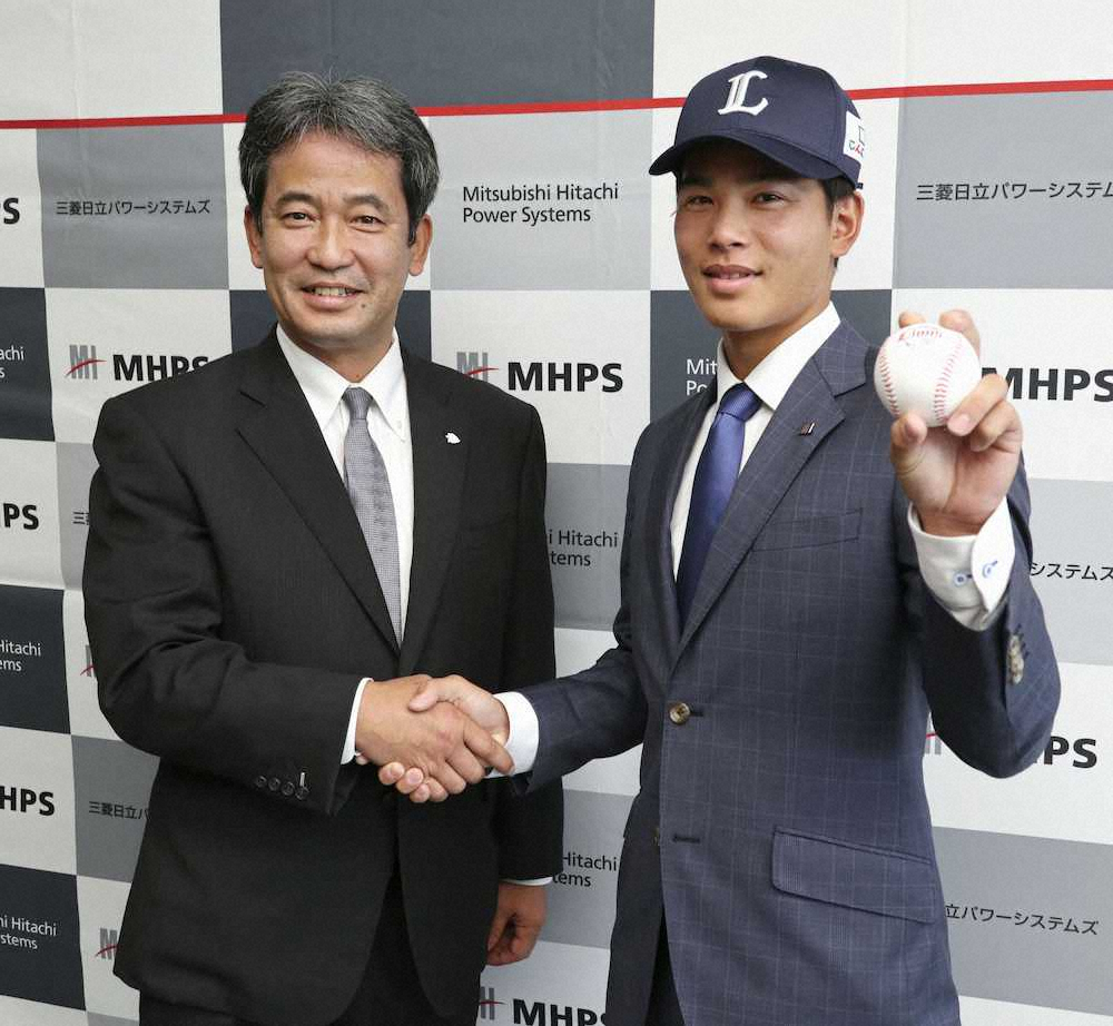 西武のドラ2、三菱日立パワーシステムズ・浜屋が横浜市内の同社で潮崎哲也編成グループディレクターらから指名あいさつを受けた。最速148キロの速球に多彩な変化球が武器の即戦力左腕は「先発でやりたい気持ちがある。先発なら2桁勝利、中継ぎなら50試合登板が目標」と力強く語った。