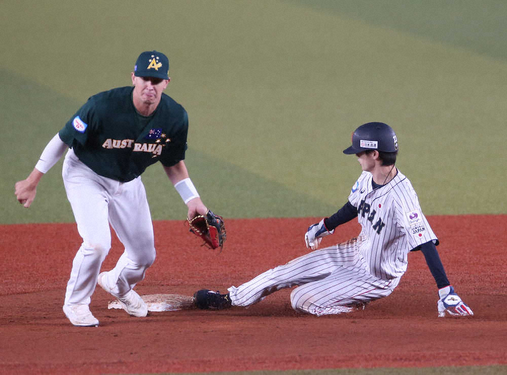 <日本・オーストラリア>7回2死二塁、打者・源田の3球目で三盗を決める周東(撮影・北條 貴史) Photo by スポニチ 侍J、豪に逆転勝ち!“神の足”周東、二盗!三盗!本塁突入!代走起用の稲葉采配… ギャラリーで見る この記事のフォト 2019年11月12日の画像一覧 もっと見る 2019年11月12日の画像をもっと見る