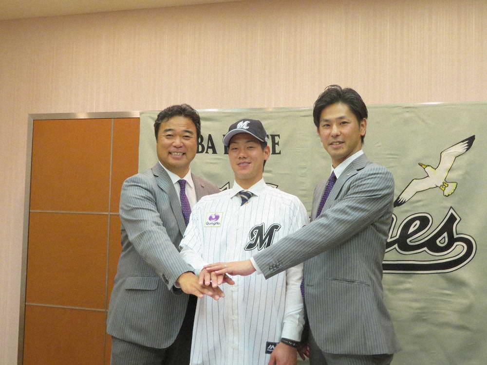 「1年目から開幕1軍が目標。入団までの2カ月間(プロの)体を作るため練習したい。自分は広角に打てると思うけど、同じ内野手として井口監督に打撃を聞いてみたい」と意気込んだ。
