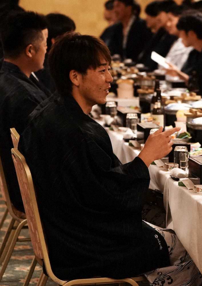 納会に参加、笑顔を見せる鈴木大地(撮影・長久保 豊)