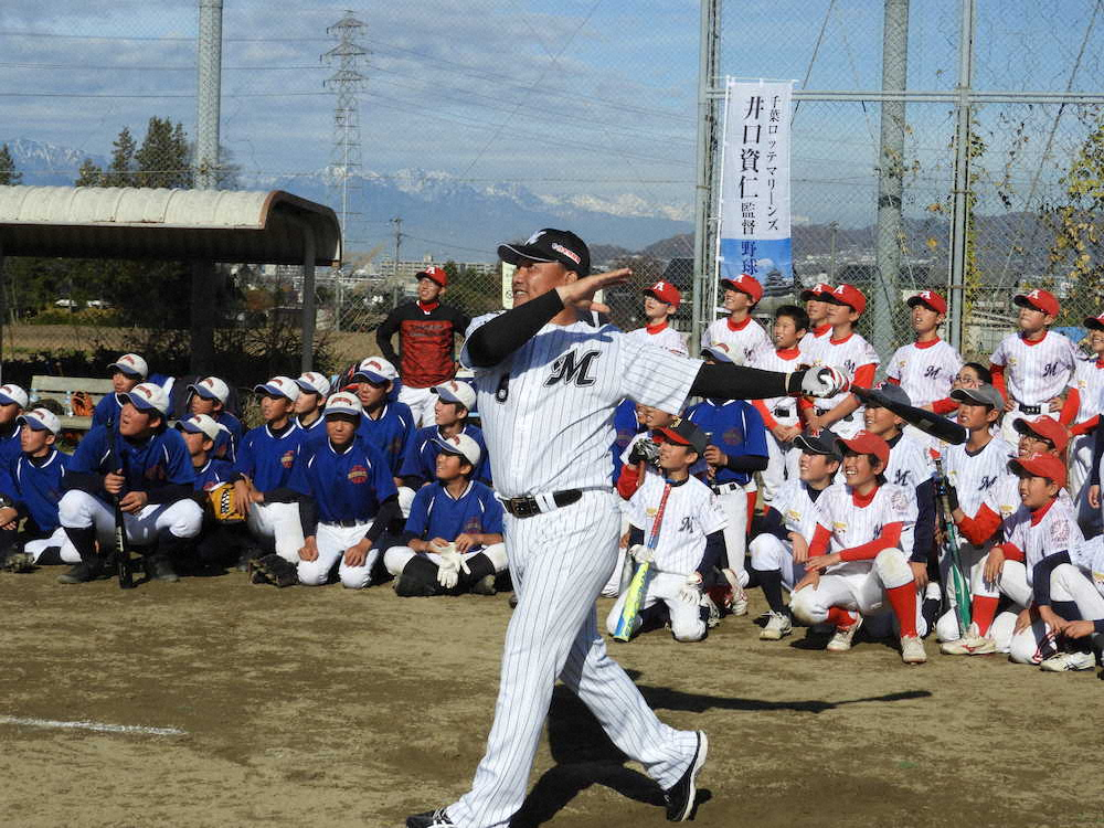 松本市内で野球教室を行ったロッテ・井口監督 Photo by スポニチ ロッテ 井口監督、松本市で野球教室 ホームラン競争まさかの敗北に苦笑い ギャラリーで見る この記事のフォト 2019年11月24日の画像一覧 もっと見る 2019年11月24日の画像をもっと見る