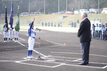 選手宣誓は前年優勝の八千代少年野球クラブの伊藤岳主将(6年)が務めた。兵庫県下32チームが出場。決勝は来月1日に行われる。