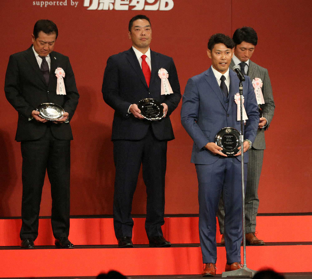 壇上で原口は「大変光栄に思います。この賞を頂くにあたり、球団関係者、病院関係者、治療科の先生方、家族。数多くの方たちにサポートしてもらってここに立っています。感謝申し上げます」とあいさつ。「来季以降、タイトルを獲ってここに立てるように頑張ります。本日はありがとうございました」と締め、会場は大きな拍手に包まれた。