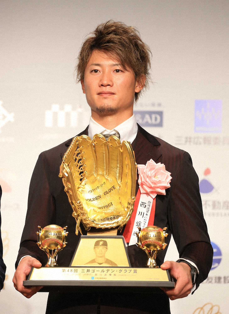 3年連続3度目の受賞となった日本ハム・西川はチームの連続受賞も27年に伸ばし「ファイターズの記録が途絶えずよかった」。前日の契約更改後に来オフにもポスティングシステムを利用してメジャーに挑戦する意向を表明。周囲に漏らしていなかっただけに、この日は控室で質問攻めになったことも明かし「秋山さんとも話したし千賀も興味津々に聞いてきました」と笑った。
