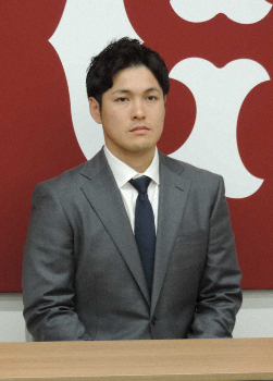 鍵谷は200万円増の年俸4500万円。背番号は32から元エースの江川卓氏がつけた30に変わり「江川さんのような力強い真っすぐが投げられる投手を目指していきたい」と話した。