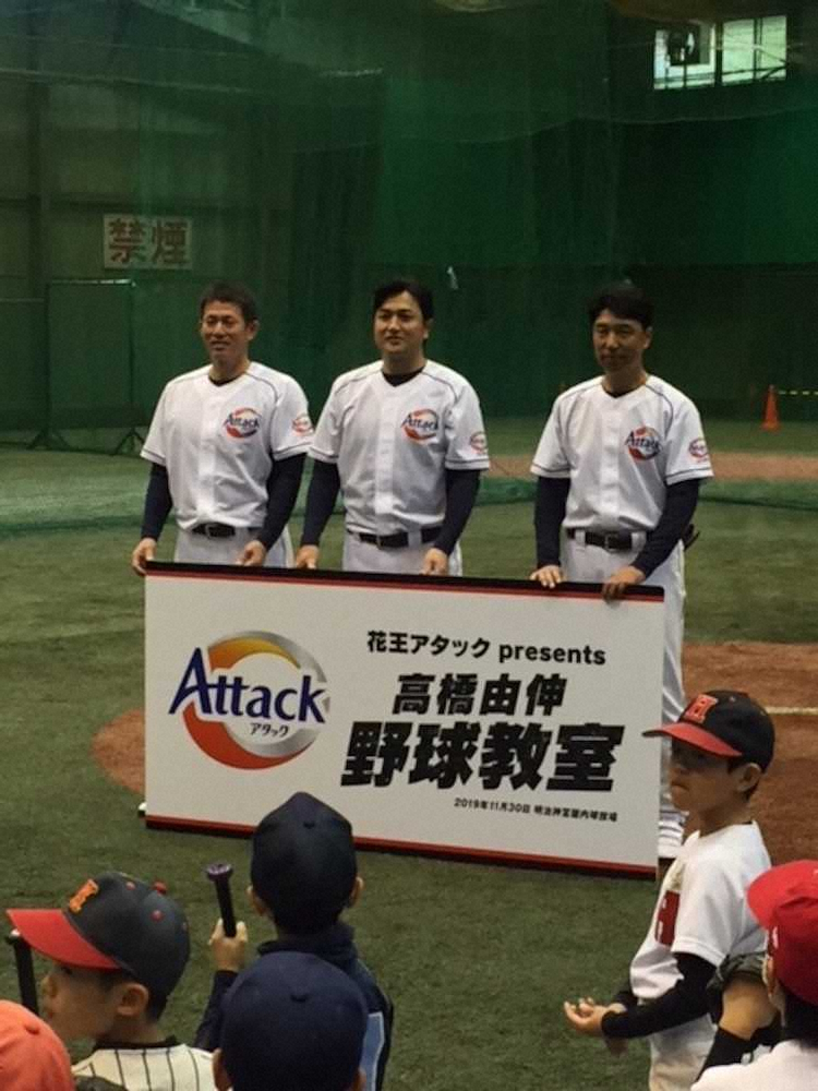 前巨人監督の高橋由伸氏(44)が30日、西武の豊田清新投手コーチ(48)、同・小関竜也新外野守備走塁コーチ(43)と都内で「花王アタックpresents 高橋由伸野球教室」を開催した。