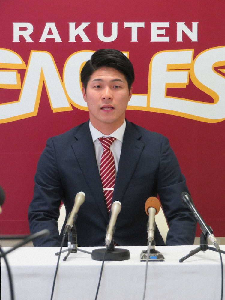大幅昇給に「ずごく高く評価してもらった。初めて1年を通して1軍でやることができた。充実したシーズンだった」と笑顔をみせた。FAで鈴木大地が加入し、ドラフトでは即戦力の小深田(大阪ガス)が1位で指名された。内野は激戦区となるが「ポジションを絶対につかみとらないといけない。キャリアハイの数字を残して、何が何でも優勝したい」と言い切った。(金額は推定)